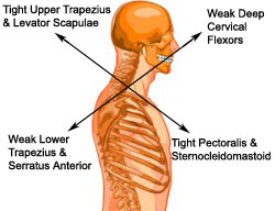 the same thing at the shoulders. This means the deep neck flexors become weak